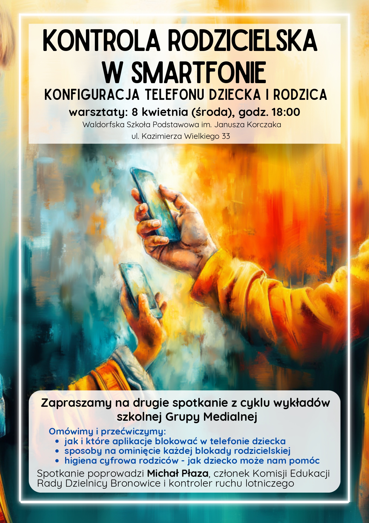 Serdecznie zapraszamy na drugie spotkanie z cyklu "Warsztaty medialne" prowadzonych przez rodziców z naszej szkoły, dla rodziców i nauczycieli. Spotykamy się w środę, 08.04.2026, o godzinie 18:00.